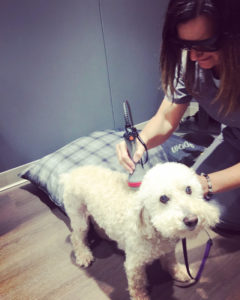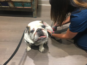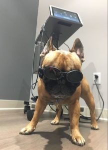 There are no known side effects from the administration of cold laser therapy. Technicians administering treatment and owners present during therapy must wear protective eye wear. Depending on the dog and the area in which laser is being used, we may also have the dog wear “Doggles” for eye safety!